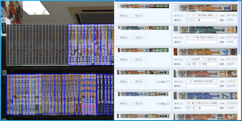 クライアント 流通・小売企業様 課題 棚卸し作業は今まで手動で行われており、時間とコストがかかるため、これを自動化したい。 解決方法 あらかじめデータベースに各商品の背表紙画像を登録しておき、棚卸し作業者が撮影した商品棚の写真をPicMatchのライブラリを用いて解析・検索し、商品の型番などを特定します。 PicMatchソリューション