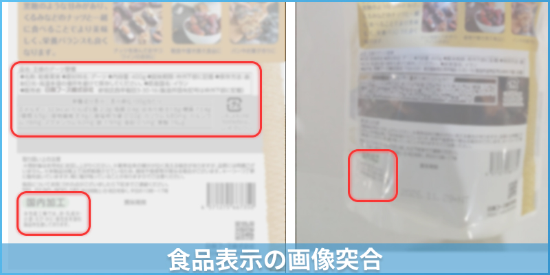 - 食品表示の確認業務において、発注時の指示情報(商品カルテ)と実際の商品パッケージ画像の内容を人手で目視確認していた