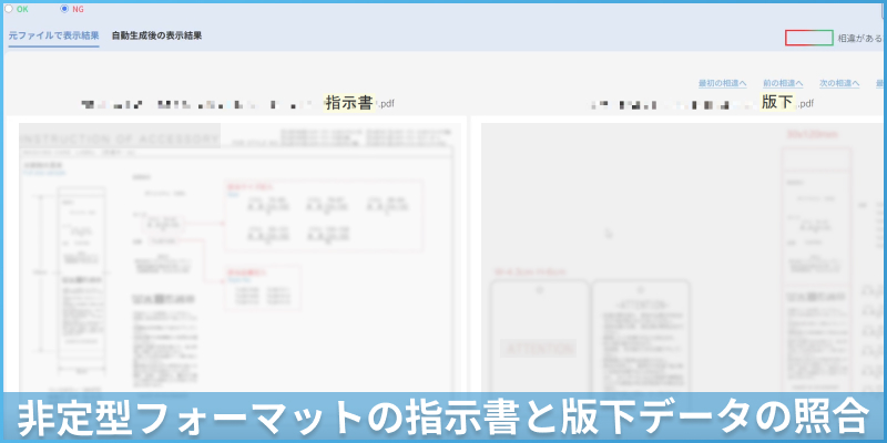 - 非定型な指示書と版下を突き合わせて差分確認を行う作業に時間がかかり、ミスも発生しやすかった