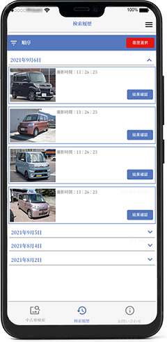 カメラ前を通過した車両の情報を、データベースとマッチングし、検索結果を手元の画面に即座に表示します。