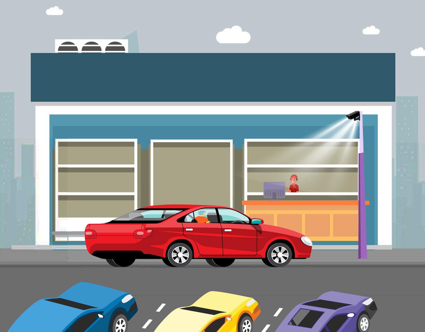 店舗駐車場に進入してきた車両について予め店頭入り口に設置したカメラを活用し、自動でAI画像査定を行います。