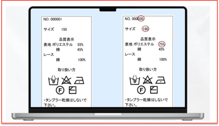 アパレル製品の洗濯ネーム・ラベル印字データとデザイン稿をAIが照合し、誤りを削減