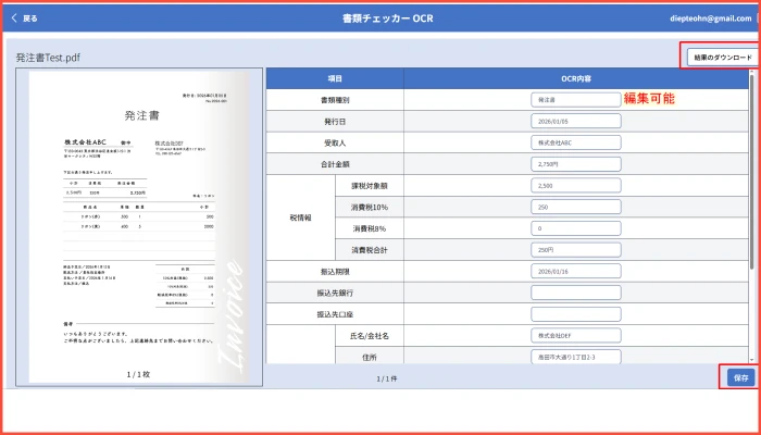 発注書・請求書のOCR自動チェック