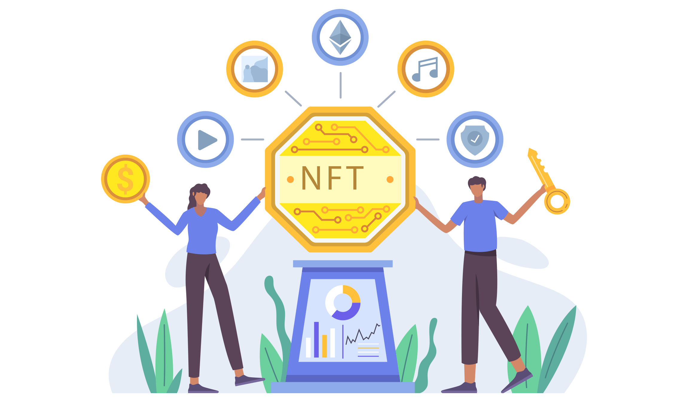 イーサリアムのスマートコントラクト(ブロックチェーン上で契約を自動的執行できる仕組み)という機能を用いることでさまざまな機能をNFTにもたせることができる。